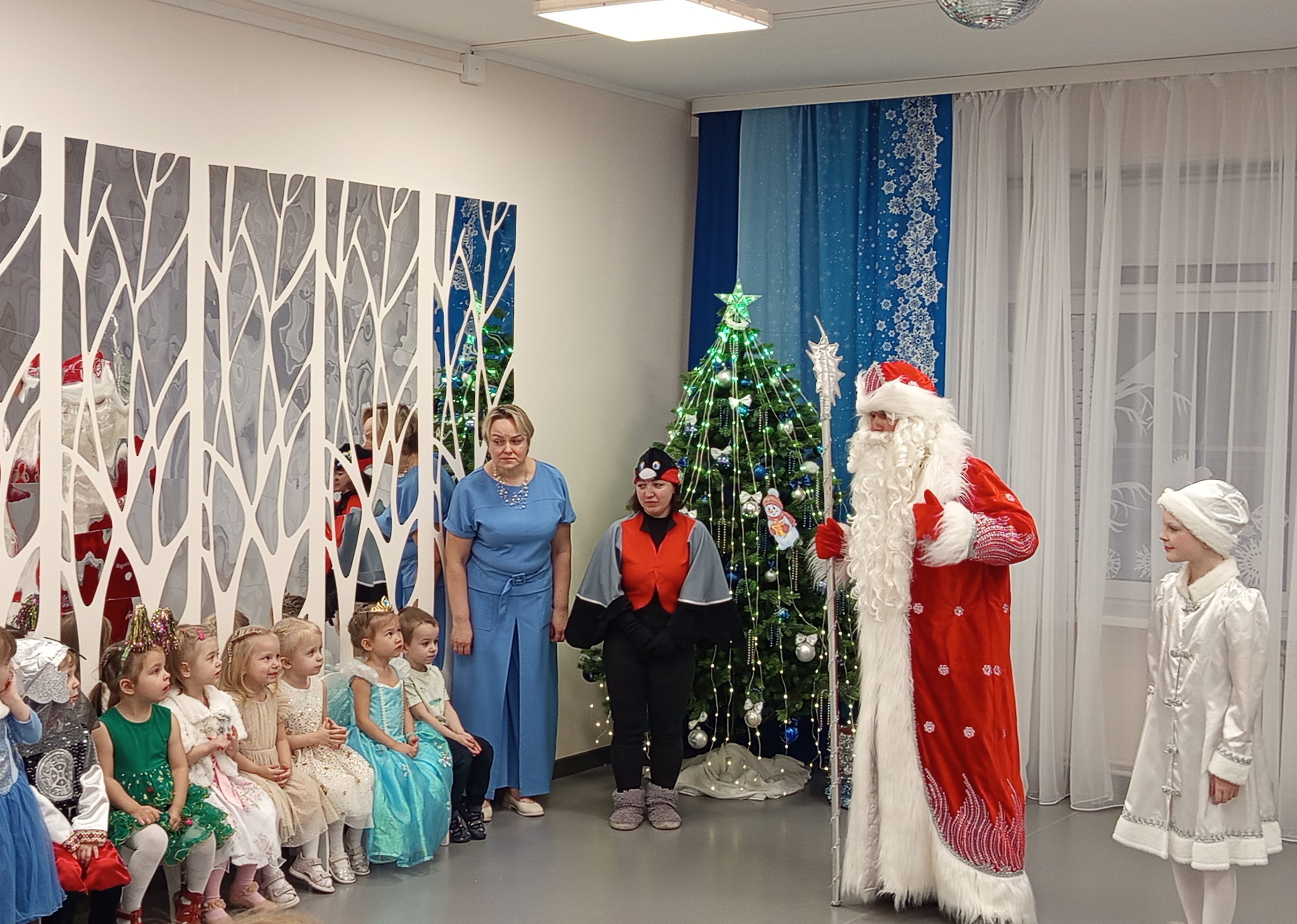 Самые маленькие воспитанники увидели иммерсивную постановку «Снежный сон» и оказались в настоящей зимней сказке, где две очаровательные снежинки рассказали о дедушке Ермолае и его домашних животных. А воспитанники подготовительной группы «Улыбка» пригласили всех в театр «Карабаса Барабаса». Яркие куклы, счастливые лица, песни, танцы, шутки, хитрость и коварство – все было на празднике! И даже сердитый Карабас Барабас сдался под напором доброты и нежности, решил исправиться и не обижать больше своих кукол. Все участники праздников особенно старались: пели песни, танцевали, читали стихи и водили хороводы с Дедом Морозом.